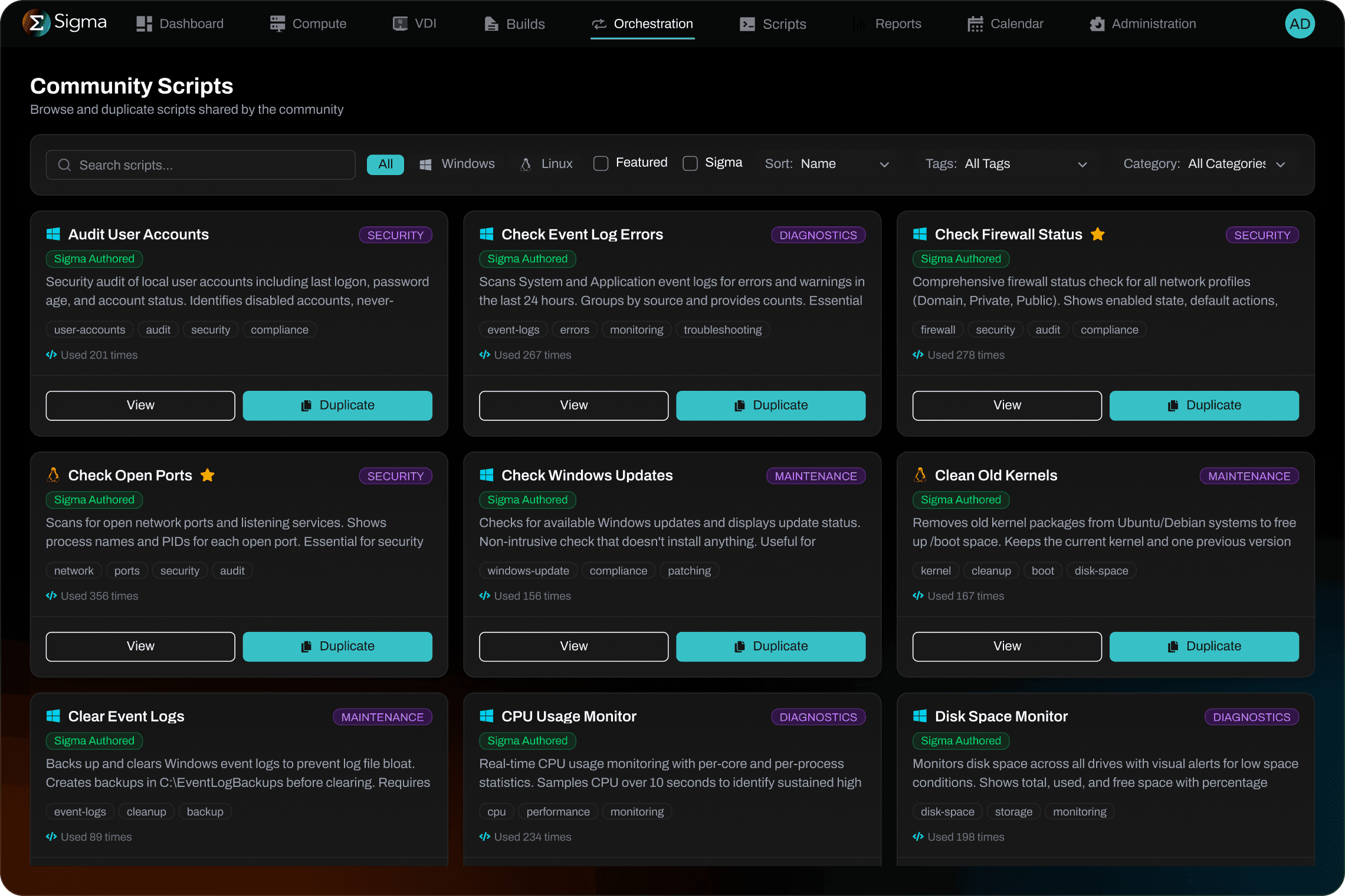 Sigma helps enterprise IT teams simplify VM, VDI, patching, and remediation workflows with no-code, agentless automation.
